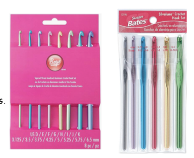 Many beginner crocheters prefer to start with a set of aluminum hooks as they are cost-efficient and well made. They are easy to find and sturdy for beginners. Susan Bates or Boye hooks are both well-respected brands that come in a range of sizes.