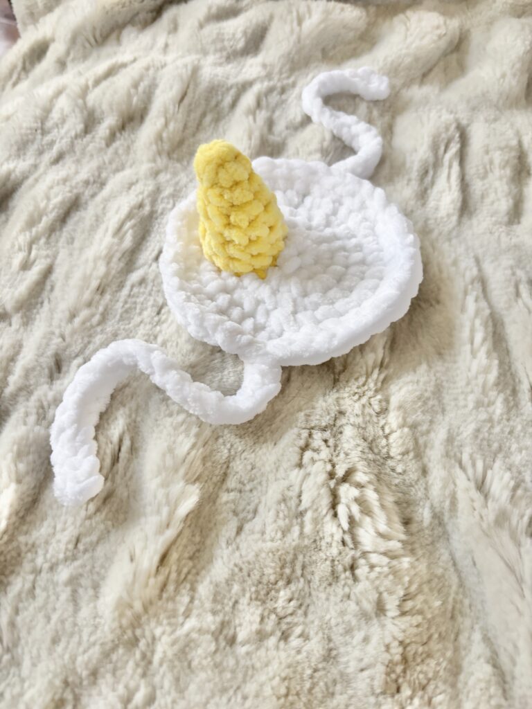 After completing the horn, sew to the front center of the hat. Stuff the horn lightly as you sew.